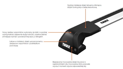 - Zaprojektowane do szybkiego montażu ze stopami Thule Edge dla zintegorwanego, obniżonego wyglądu