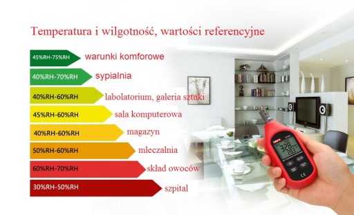 - Rozdzielczość: 0,1°C; 0,1%RH