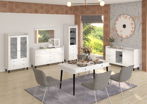 Kolekcja DOLCE to idealne rozwiązanie do salonu lub sypialni. Mebel nada nowoczesnego wyglądu całej aranżacji, a prosta i oryginalna forma odnajdzie się w wielu wnętrzach. Seria DOLCE posiada minimalistyczne uchwyty pasujące kolorystycznie do nóżek. Mebel jest bardzo pojemny i funkcjonalny. Kolekcja wyposażona jest w system cichego domyku, płyty zabezpieczone są obrzeżem ABS.