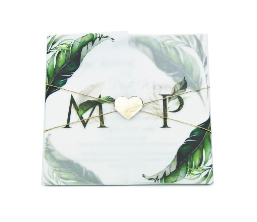 2. Okładka z kalki na której znajdują się inicjały Państwa Młodych. Na okładce mogą znaleźć się dowolne inicjały. (Dotyczy wyłącznie zaproszeń z personalizacją)
