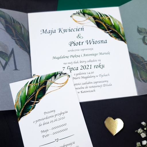 - Pewność że do zaproszeń dokupią Państwo inne elementy papeterii ślubnej (winietki, zawieszki, menu, nr stołów, magnesy, księgi gości, pudełka na koperty itp.) w motywie graficznym spójnym z zaproszeniem