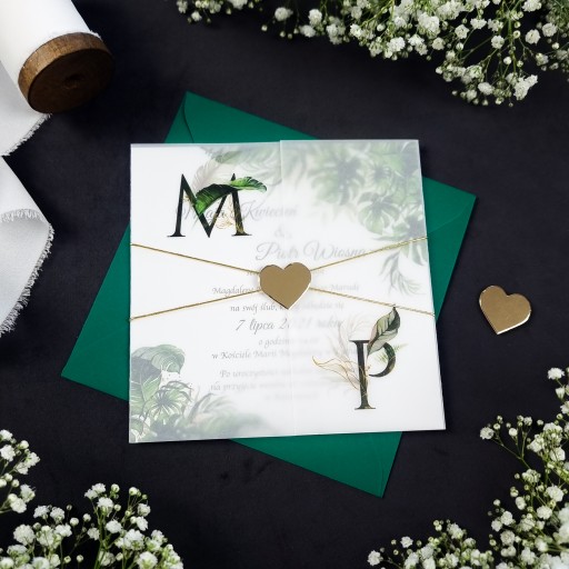 - Zaproszenie Ślubne z okładką z kalki i sznurkiem do samodzielnego przewiązania zaproszeń