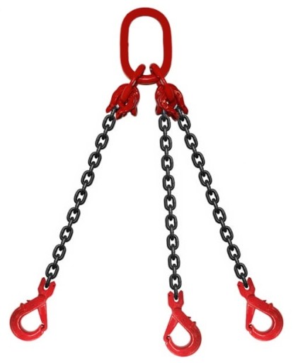 Zawiesie łańcuchowe 3-cięgnowe rozmiar 8 klasa 8 WLL= 4,25T długość 2,5M zakończone hakiem bezpiecznym z hakami skracającymi