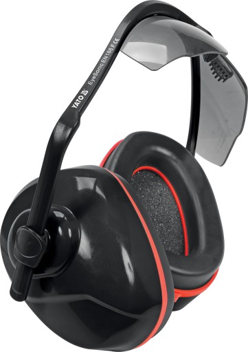Nauszniki przeciwhałasowe zintegrowane z wymiennymi szarymi okularami ochronnymi YT-74635 chronią nie tylko słuch ale i oczy użytkownika. Zauszniki z regulacją na przegubach kulowych jednocześnie pełnią funkcje pałąka, co umożliwia pracę np. w kasku ochronnym bez dodatkowego ucisku głowy.