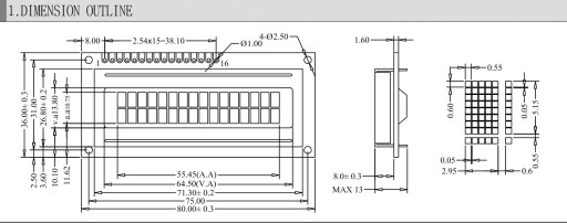 ✅Wyświetlacz LCD 2x16 80x36mm niebieskie podświetlenie