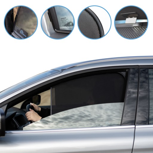 Nasze zasłony samochodowe dostarczane są zawsze z zestawem uchwytów metalowych i instrukcją montażu. Prosimy zwrócić uwagę, że zasłony RayStop® do szyb bocznych otwieranych projektowane są w postaci ekranów przeciwsłonecznych, nie powinny montować się “na wcisk” i dotykać szyby jak w przypadku zasłon innych producentów.Bardzo mocne magnesy zamontowane są już oryginalnie na zasłonach do szyb bocznych otwieranych. Do ramy drzwi samochodu muszą być przyklejone (na oryginalną taśmę 3M) metalowe uchwyty, które łapią zasłonę. Metalowe uchwyty montuje się jeden raz a następnie zasłonki można zakładać lub zdejmować, kiedy jest to potrzebne, w dowolnym momencie w ciągu kilku sekund! W razie demontażu uchwytów taśma nie pozostawia żadnych śladów.
