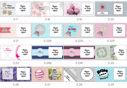 Każdy z nich możemy dowolnie personalizować - zmieniać napisy, ilość zdjęć itp.