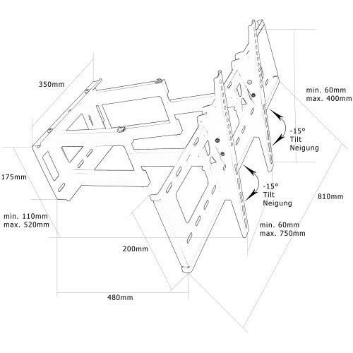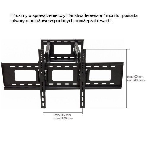 - Wymiar całkowity: 805 x 450 mm (max. odległość otworów w tv: 750 x 400 mm)