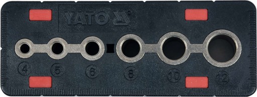 - 5 otworów wyposażonych w prowadnice ze stali węglowej dla wierteł o średnicy 4, 5, 6, 8, 10 i 12 mm