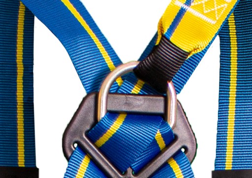 SZELKI BEZPIECZEŃSTWA EN361: stalowe pierścienie zaczepowe grzbietowe i tekstylne punkty zaczepowe. Dzięki dużej wytrzymałości skutecznie powstrzymują spadanie.