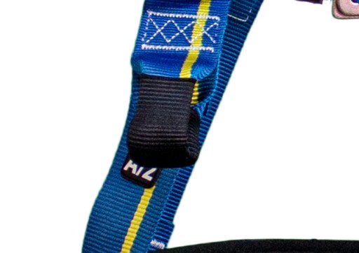 Taśma przedłużająca zaczep tylny zintegrowana jest z pierścieniem zaczepu grzbietowego. Pozwala na łatwe odpinanie i zapinanie innych elementów bezpieczeństwa.