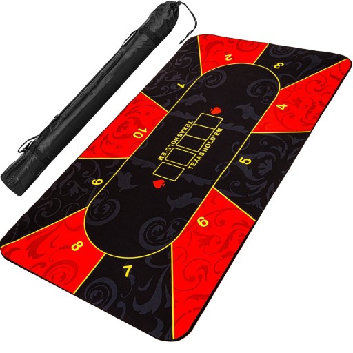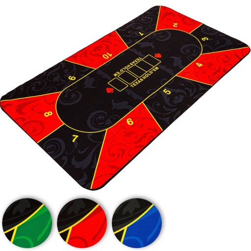 Różni gracze mają różne wymagania i gusty dotyczące stołów pokerowych oraz mat. A co spełni Twoje oczekiwania? Są trzy podstawowe rodzaje stołów dostępnych na rynku a Ty powinieneś wybrać najbardziej odpowiednią opcję kierując się jakością, ceną oraz ilością przestrzeni, jaką dysponujesz w domu. Matę do pokera można zwinąć, aby zaoszczędzić miejsce jak również łatwo ją zabrać w dowolne miejsce dzięki dołączonej torbie. Każdy stół w domu o odpowiednich wymiarach można łatwo przekształcić w prawdziwy stół do pokera. Praktyczna torba z zamkiem błyskawicznym na zwiniętą matę GRATIS !!!