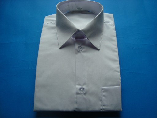 Oferuję Państwu białą wizytową koszulę chłopięcą rozmiar 86 cm. Koszula jest z długim rękawem, jedna kieszonka z przodu na piersi. Materiał; bawełna 65%, 35% poliester. Produkt polski. Wymiary: kołnierz - 27 cm, szerokość w klatce - 28 cm, długość - 38 cm, długość rękawa - 28 cm.