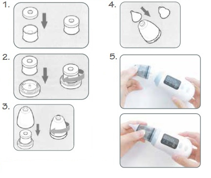 Odessij zalegające wydzieliny, umieszczając końcówkę ssącą w nosie w wygodnej pozycji