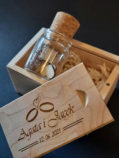 Szybki Pendrive/Pamięć USB 3.0 32GB butelka w drewnianym pudełku z Twoim własnym spersonalizowanym grawerem.