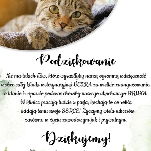 Często wiele zawdzięczamy weterynarzowi, lekarzowi, całemu zespołowi lekarzy, klinice, szpitalowi. Warto podziękować wręczając spersonalizowany plakat z życzeniami płynącymi prosto z serca.