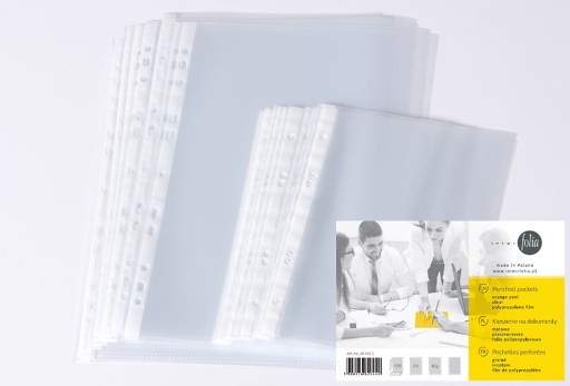 BIUROWE KOSZULKI NA DOKUMENTY - wykonane z miękkiej folii polipropylenowej przeźroczystej matowej.