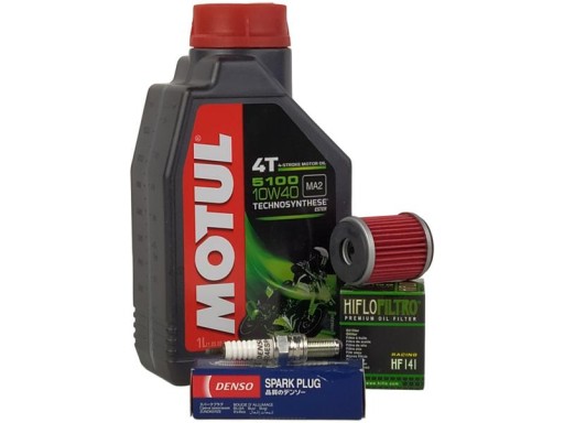 - Przedmiot: Olej MOTUL, filtr oleju HIFLO i świece DENSO