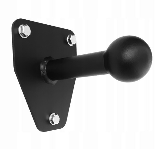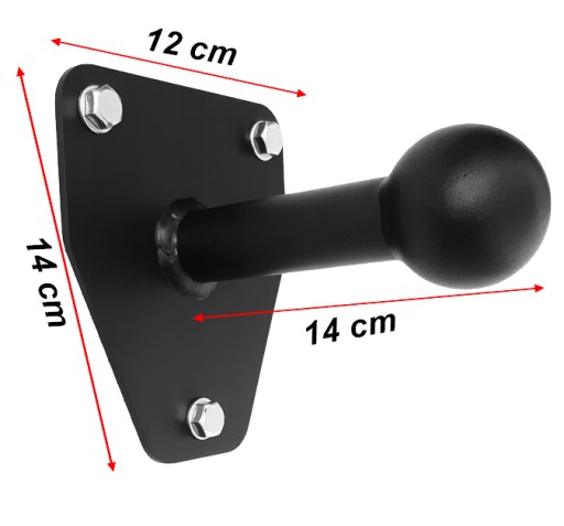 Stalowy wieszak ścienny idealnie sprawdza się w garażu - służy do przechowywania platform rowerowych, bagażników montowanych na haku holowniczym. Kula wieszaka posiada identyczne wymiary jak główka haka holowniczego, po zamontowaniu platformy, całość jest bezpieczna i stabilna. Wieszak montowany jest do ściany, założona platforma rowerowa przechowywana jest w pozycji pionowej.