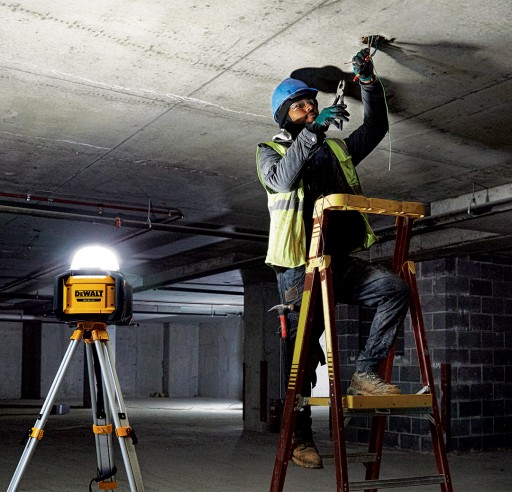 Akumulatorowa lampa robocza LED 360°, 18V Li-lon XR firmy DeWalt model DCL074. Lampa sterowana za pomocą aplikacji ToolConnect i Bluetooth, równomiernie oświetlająca całe pomieszczenie i cały obszar roboczy. Wersja BODY bez akumulatora i ładowarki, pakowana w kartonie.Wysoka moc świetlna do 5000 lumenów przy trzech ustawieniach jasności zapewnia optymalny dobór oświetlenia do wykonywanej pracy.Trwała konstrukcja z wbudowaną kratką ochronną zabezpiecza lampę na placu budowy.
