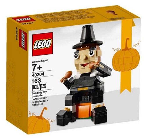 Ten zestaw to okazja do doskonałej zabawy! Znajdziesz w nim głodnego pielgrzyma w tradycyjnym stroju i w charakterystycznym kapeluszu oraz butach. Posadź go na wielkiej dyni i poczęstuj dwoma smakowitymi udkami z indyka. To świetny prezent z okazji Święta Dziękczynienia dla miłośników zestawów do budowania LEGO®.