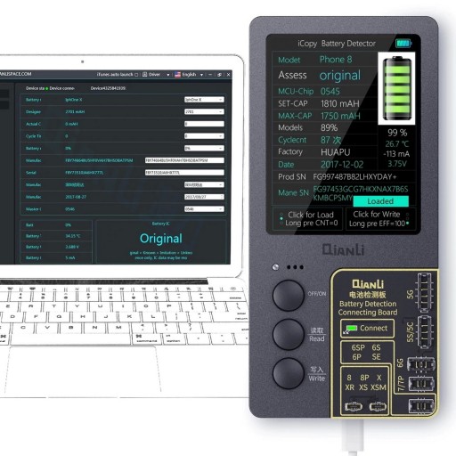 Urządzenie do przenoszenia danych z oryginalnego ekranu iPhone'a na nowy ekran zastępczy. Czynność kopiowania danych z oryginalnego wyświetlacza umożliwia zachowanie funkcji True Tone (automatyczne dostosowywanie barwy i intensywności wyświetlanego obrazu do aktualnego natężenia światła w otoczeniu). Posiada w zestawie dodatkowe płytki do testowania i programowania baterii oraz do testowania kabli Lightning i zestawów słuchawkowych ze złączem Lightning