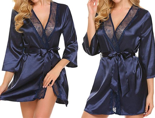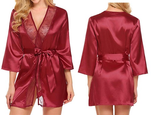 Koronkowe wykończenie i satynowy materiał zapewnią seksowny wygląd, a wiązanie w pasie podkreśli sylwetkę.