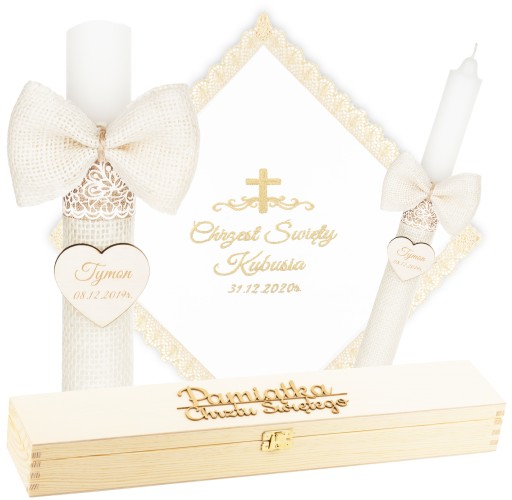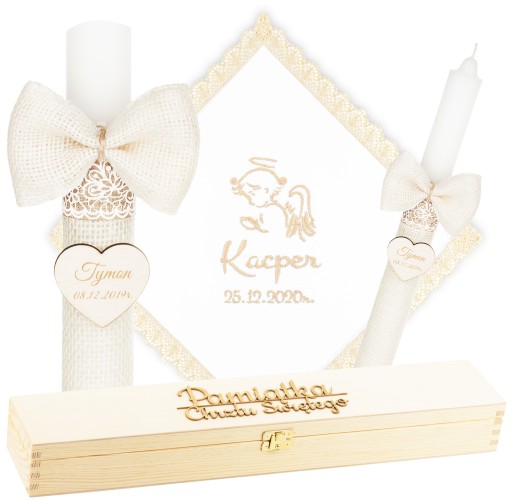 ŚWIECA + SZATKA + PUDEŁKO GRAWEROWANA