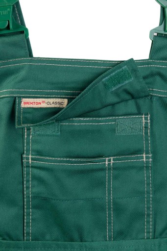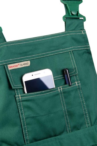 - Kieszenie: wewnętrzna kieszeń na dokumenty zapinana na zamek, dwie kieszenie boczne, wzmocnione kieszenie boczne, wzmocniona kieszeń zapinana na rzepy, kieszeń na komórkę, kieszeń na długopisy, kieszeń na miarkę „metrówkę”, szlufka na młotek,