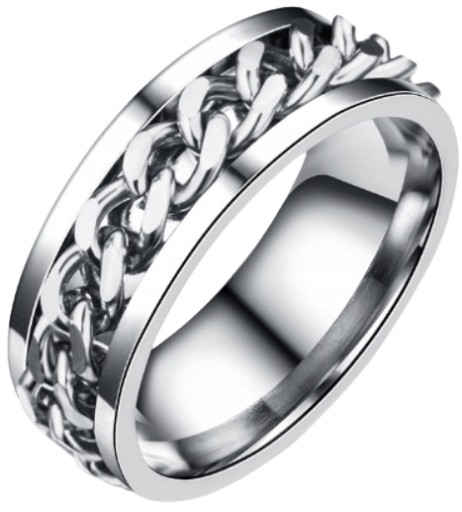 Стальное кольцо, перстень-печатка в стиле панк-рок с цепочкой