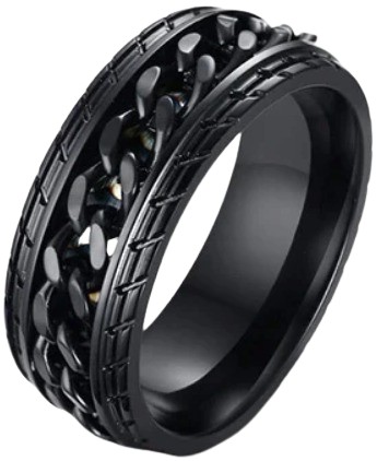 Черное кольцо-печатка-цепочка в стиле панк СТАЛЬ