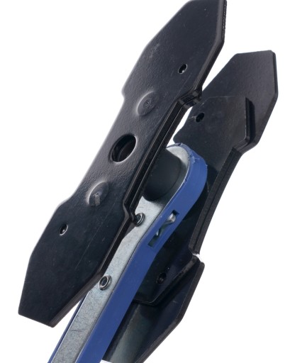 Dwustronne działanie poprzez równomierne wciskanie tłoczków z obydwu stron (2-way system). Mechanizm grzechotki wciska tłoczki z dużą siłą, nie obciążając użytkownika i gwarantując łatwą i swobodną pracę. W dowolnym miejscu na osi zacisku. Eliminuje nierównoległe rozszerzanie tłoczków, bez ryzyka ich blokowania.