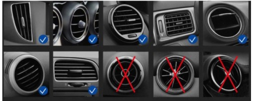 Dla każdego typu nawiewu – Uchwyt jest kompatybilny z 98% typów kratek samochodowych.