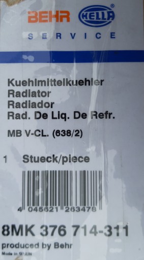 Mercedes Vito / Viano / V-klasa W638 chłodnica płynu, nowa, producent BEHR -Hella Service.