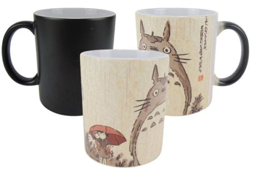 Kubek jest czarny gdy jest zimny. Spod czarnej warstwy delikatnie przebija nadruk. Po zalaniu gorącym płynem nadruk powoli staje się widoczny. Po ostygnięciu, kubek ponownie robi się czarny.