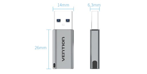 - Konektor: żeński USB 3.1 Gen1 Type-C --> męski USB 3.0 Type-A