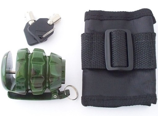 ANTYKRADZIEŻOWA BLOKADA TARCZY HAMULCOWEJ W KSZTAŁCIE GRANATU, W KOMPLECIE POKROWIEC.