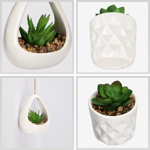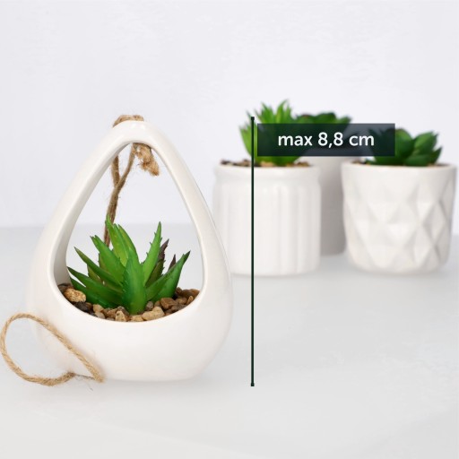 - Dobre rozwiązanie do domu i mieszkania: To wyśmienita okazja do przygotowania nowoczesnej aranżacji złożonej z subtelnych sukulentów. Twój salon czy przedpokój w momencie się odświeży, a Ty zaoszczędzisz na wydawaniu fortuny na prawdziwe kwiaty. Bo nie musisz kupować co miesiąc nowych kwiatów - wystarczy, że sięgniesz po sztucznego odpowiednika, by móc cieszyć się nim przez długi czas!