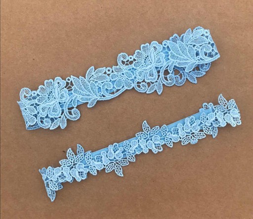 Fantastyczna błękitna podwiązka ślubna z koronki. Komplet - 2 podwiązki