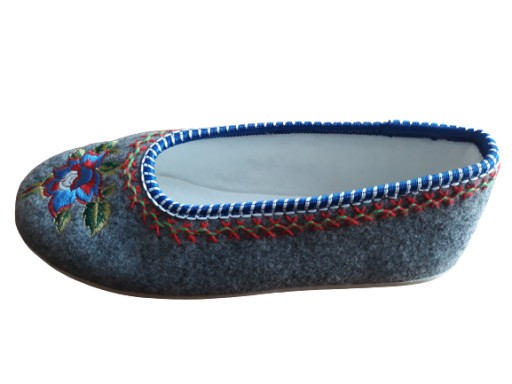 Pantofle wykonane są bardzo solidnie,z ozdobnym haftem góralskim . Są bardzo lekkie, ciepłe i wygodne. Przeznaczone do użytku domowego.Bardzo bezpieczne