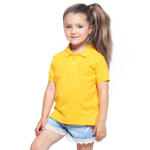 Polo młodzieżowe z krótkim rękawem. Miękki chwyt bawełny. Zapinane na dwa guziki. Ściągacze na rękawach. Boczne rozcięcia. Łatwo usuwalna metka. 100% stabilizowana bawełna czesankowa pique.