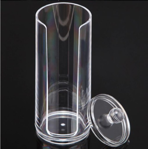 Praktyczny przezroczysty pojemnik do przechowywania i organizacji płatków i wacików kosmetycznych. Organizer zapewnia higieniczność przechowywanych w nim produktów.