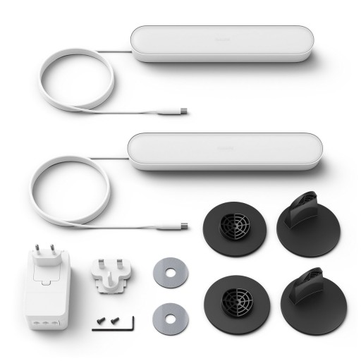 Zestaw dwóch podłużnych lamp Philips Hue Play w kolorze białym, świecących białym i kolorowym światłem. Podwójna zabawa, jedno opakowanie – lampy zapewniają nieograniczone możliwości tworzenia wyjątkowego nastroju. Wykorzystaj dołączone do zestawu stojaki, aby ustawić lampy pionowo, położyć je poziomo lub zamocować za telewizorem. Zgraj światła z filmem, grą czy muzyką i poznaj nowy wymiar domowej rozrywki. Opakowanie zawiera także zasilacz.