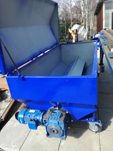 Kosz zasypowy o długości 2 m wysokości 1,5 oraz 60 cm, podajnik wybierający fi 140 L 3000 mm z napędem przekładnia ślimakowa 90 silnik2,2 kw