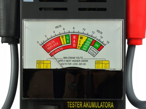 - przeznaczony do testowanie akumulatorów kwasowo-ołowiowych