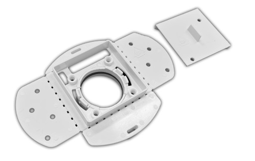 W skład zestawu wchodzą płytki uniwersalne, w których układ otworów umożliwia zastosowanie większości gniazd ssących dostępnych na rynku. Do płytki dołączona jest wygodna zaślepka gniazda, zabezpieczająca instalację podczas procesu tynkowania.