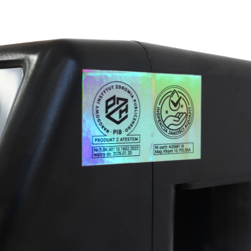 Do każdego urządzenia załączamy kartę gwarancyjną i instrukcję obsługi z hologramem i naklejką potwierdzającą numer partii. Dzięki temu mają Państwo pewność, że kupują Państwo oryginalny zmiękczacz Aquafit. Tą samą naklejkę znajdą Państwo na głowicy sterującej urządzeniem.