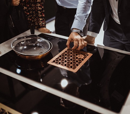 Sygnał wizualny wskazuje najkorzystniejsze miejsca ustawienia naczyń do gotowania, by w pełni wykorzystać moc płyty indukcyjnej.