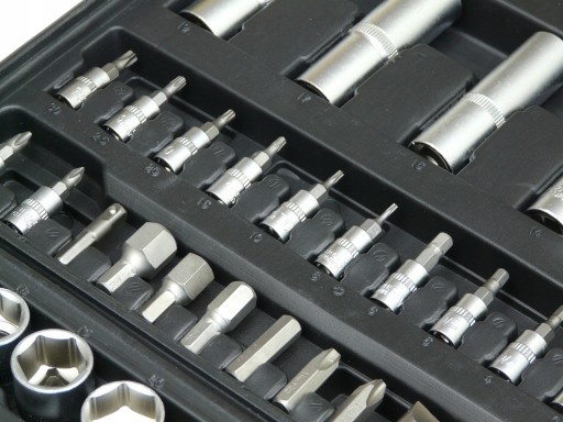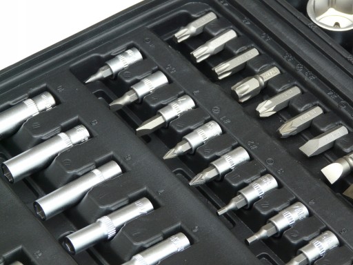 Zestaw kluczy 109 el. jest zapakowany w praktyczną miękką walizkę. Nasadki odznaczają się doskonałą wytrzymałością mechaniczną, oraz dużą odpornością na ścieranie, grzechotki posiadają MOCNE zębate mechanizmy. Pełen Pakiet nasadek zapewni doskonałe dopasowanie klucza do danej potrzeby w każdym miejscu pracy.