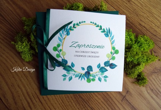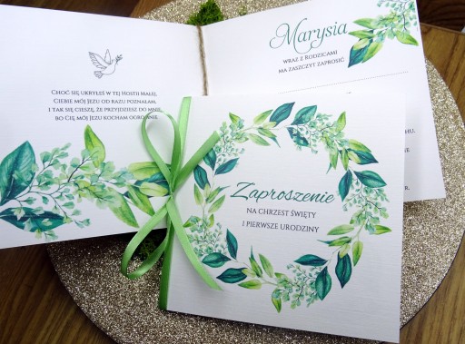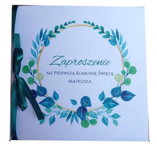 Zaproszenia na Pierwszą Komunię Świętą wianki - wstążka z boku